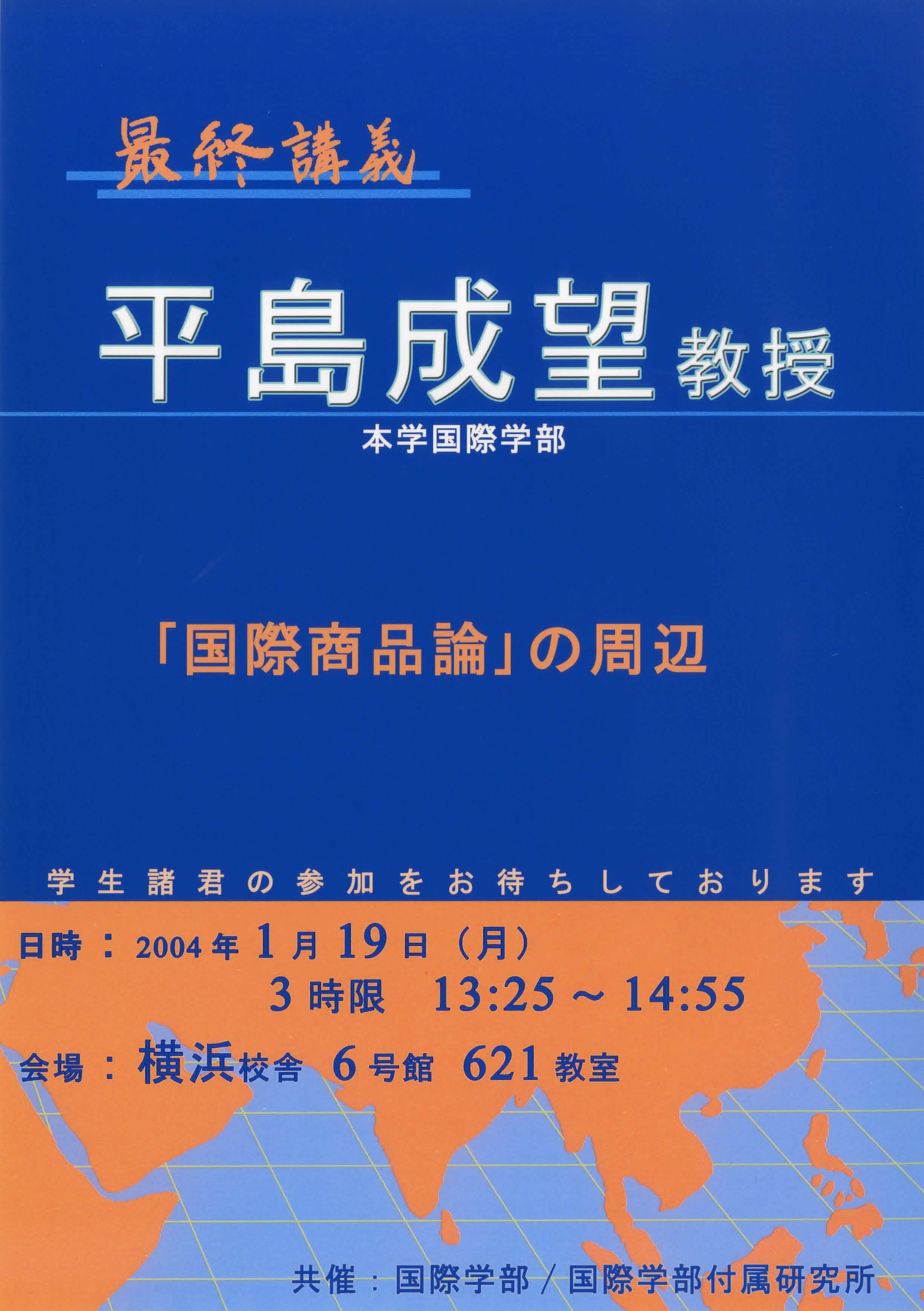 1988年から16年間奉職しました明治学院大学国際学部を退職するに当たり、このような機会を与えてくださった明治学院大学に心から感謝の意を表したいと思います。また国際学部という「無限の可能性を秘めた」新学部の創設期に参画できたことも幸いでした。原石として入学してくる若い世代が、4年間という短い期間にさまざまな色に輝き始めるのを見る喜びは、教師としてこの上ない財産になりました。