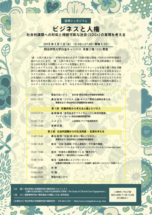 明治学院大学国際学部付属研究所 共同研究 『企業の社会的責任と市民の社会的関与の研究(The Study of CSR and Civic Engagement)』