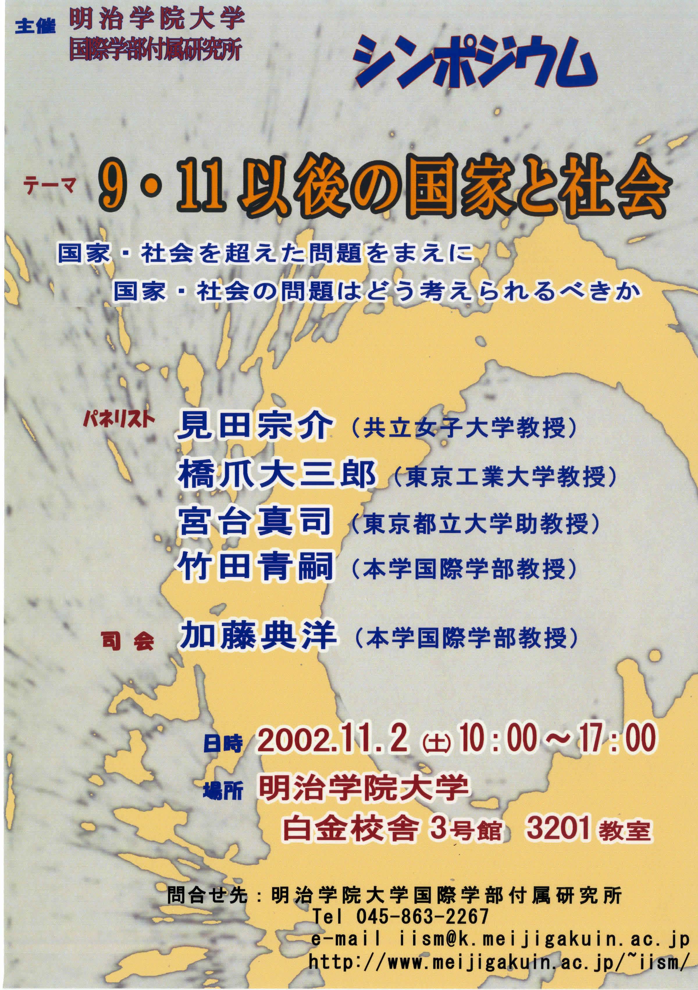 1995年の見田宗介著『現代社会の理論』を共通の出発点に、2001年9・11以降の新しい状況における国家と社会の考え方について、既成の枠組みにとらわれず、先端的な課題を、話し合う。