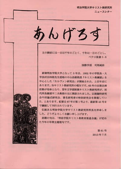 所員、研究員によるキリスト教に関連する思想、社会問題や聖書学などの研究成果を収載。