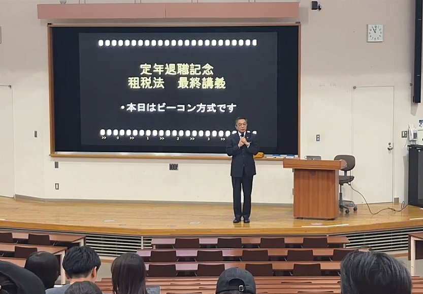 本日は2時間目に租税法の最終講義があり、「映画と税金」というタイトルで定年退職記念特別講義をしました。